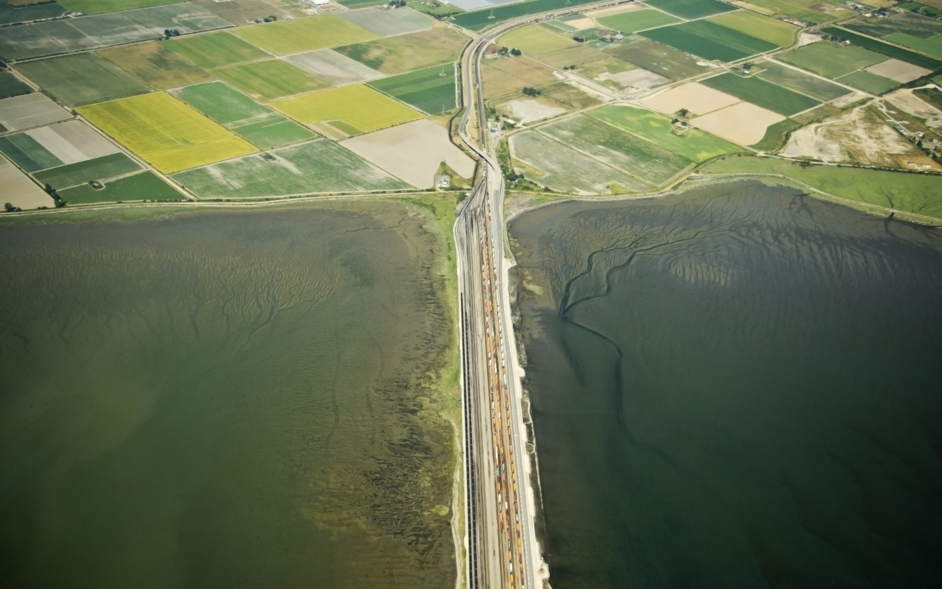 Os telhados vermelhos das casas no topo da planície de inundação do rio