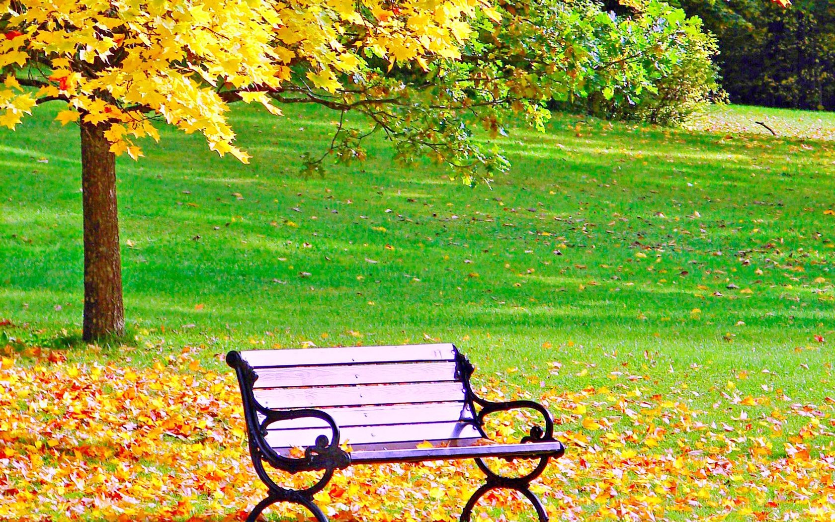 Banco rosa no Parque do outono