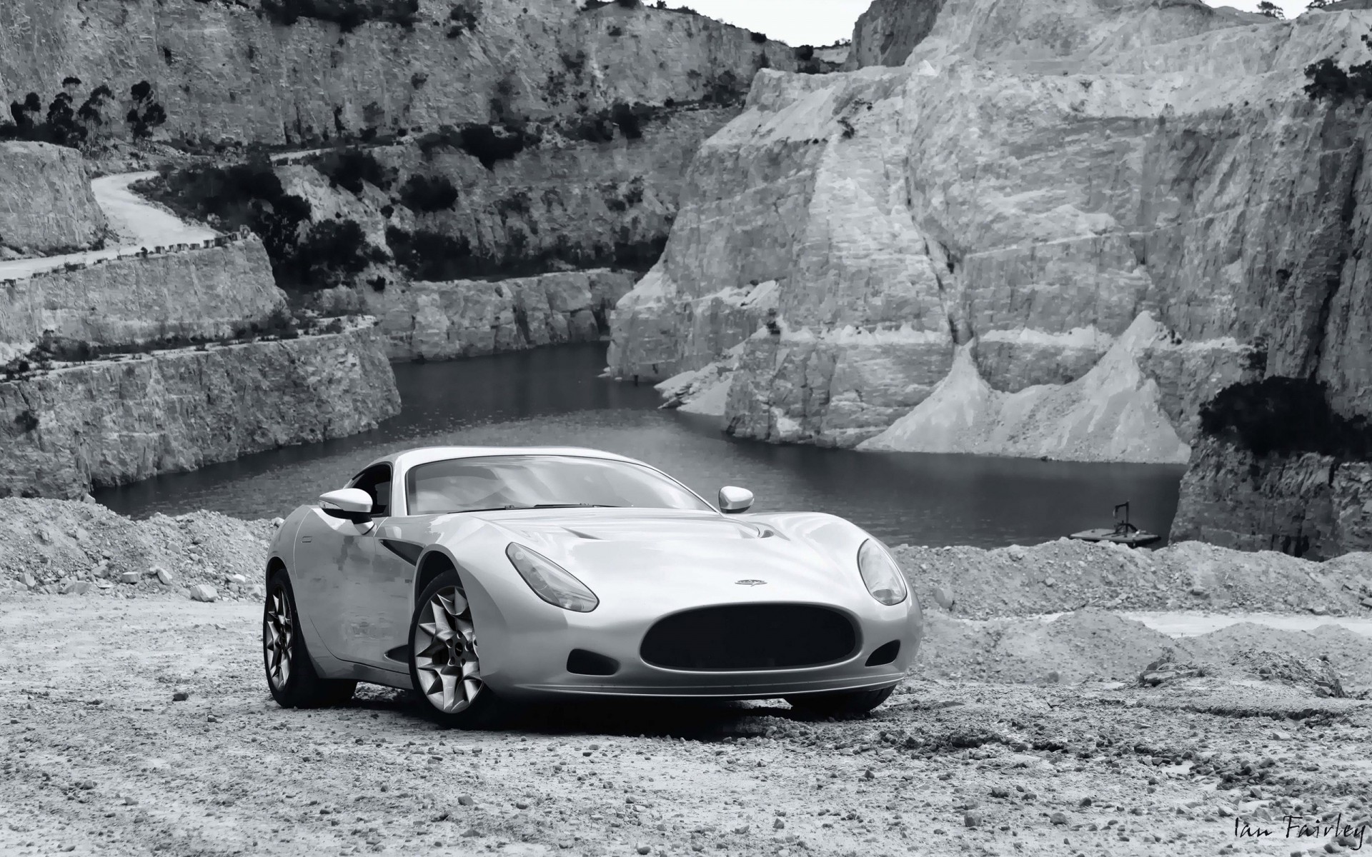Carro cinza nas Montanhas Cinzentas perto do lago cinza