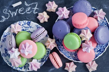 Cesta de vime com ovos de Páscoa em fundo amarelo