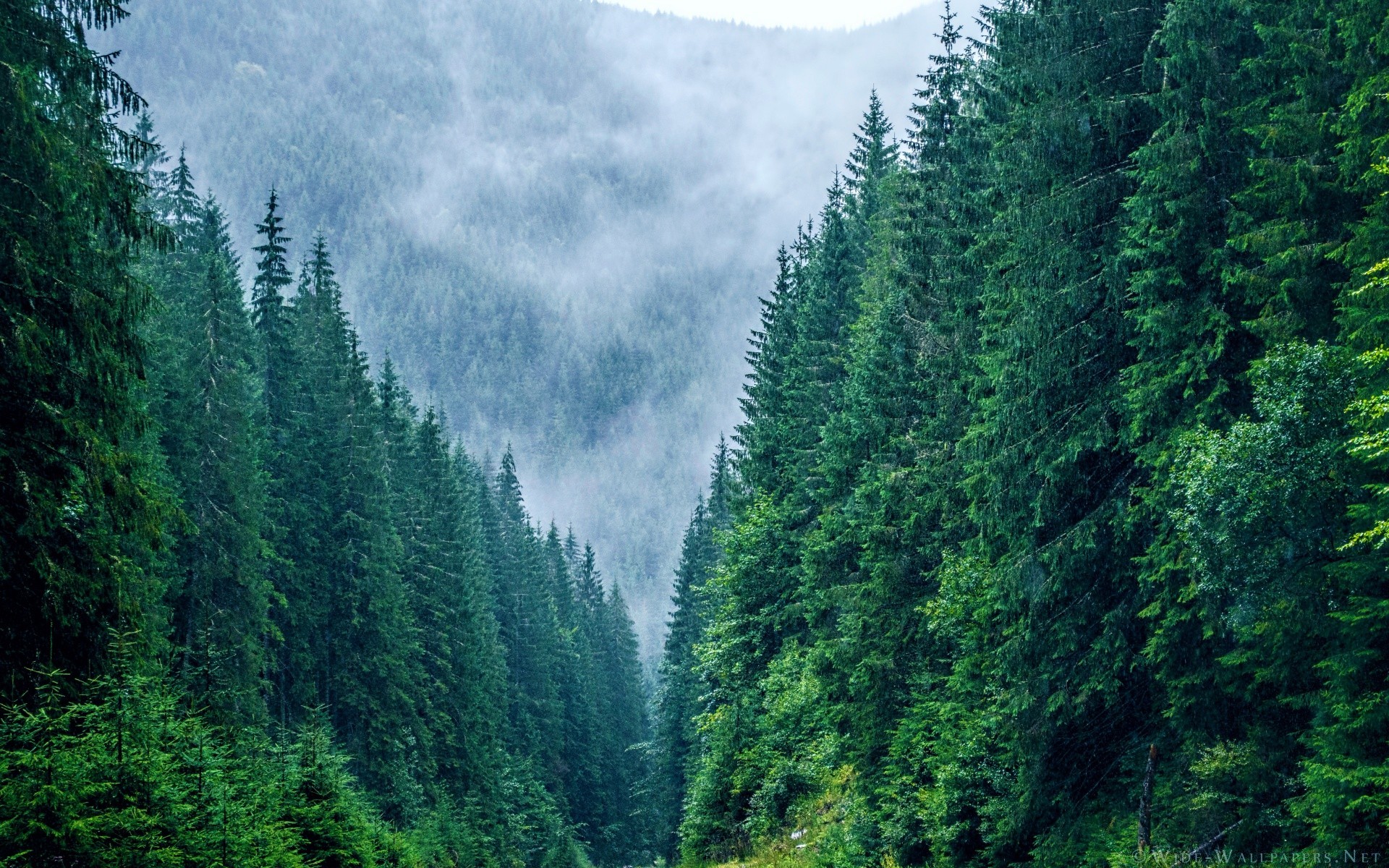 Floresta de coníferas nas profundezas das montanhasFloresta de coníferas nas profundezas das montanhas