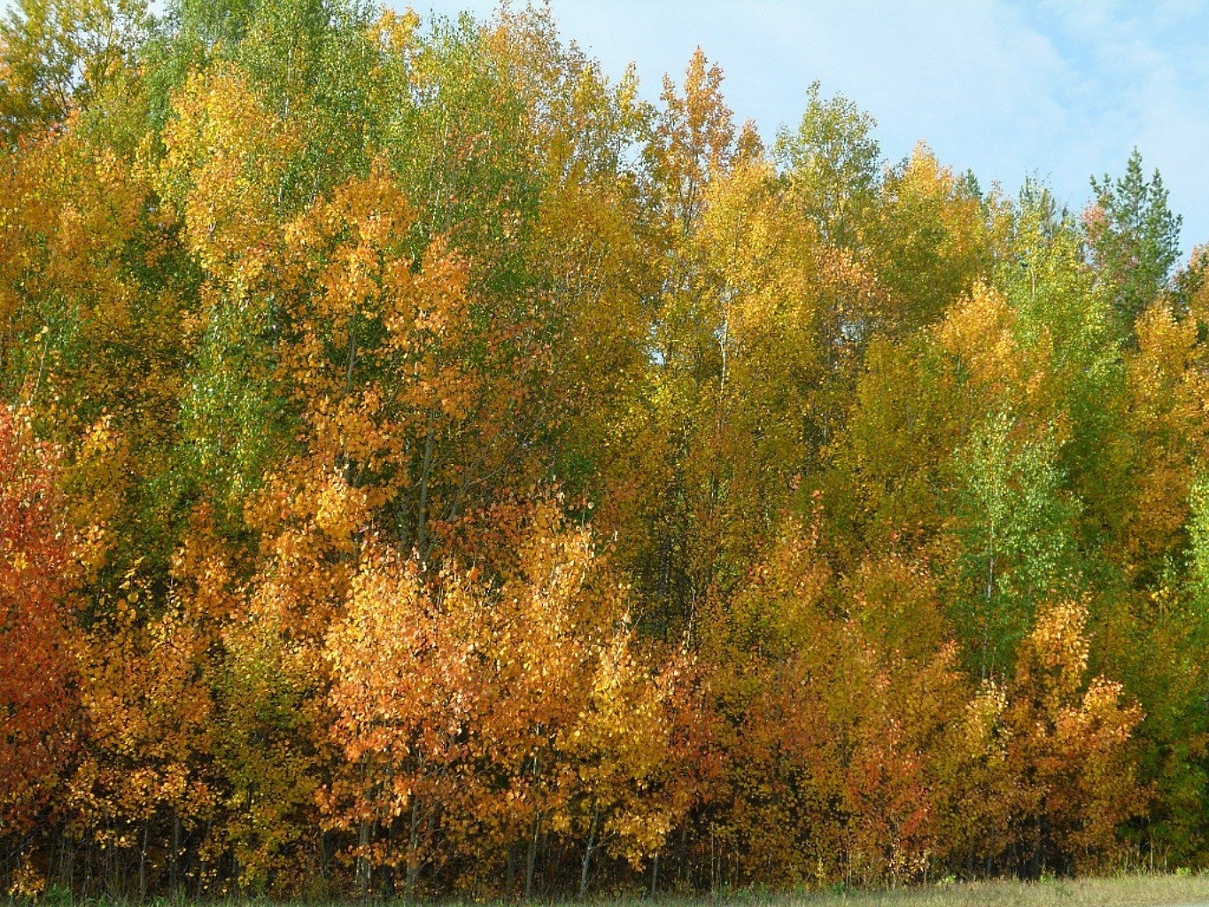 Paisagem de árvores coníferas cujas raízes estão cobertas de folhagem caída