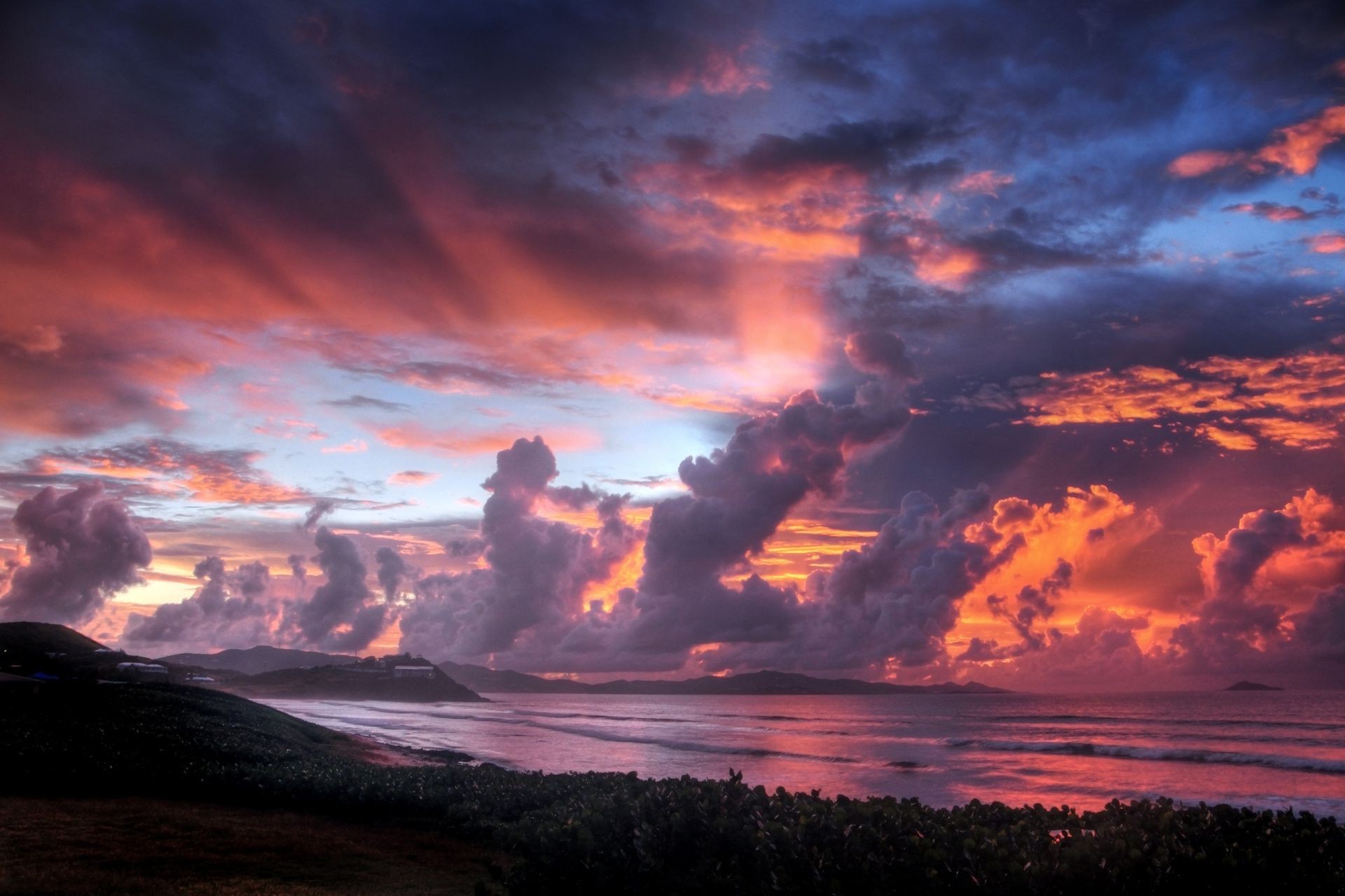 Paisagem do pôr do sol à beira-mar