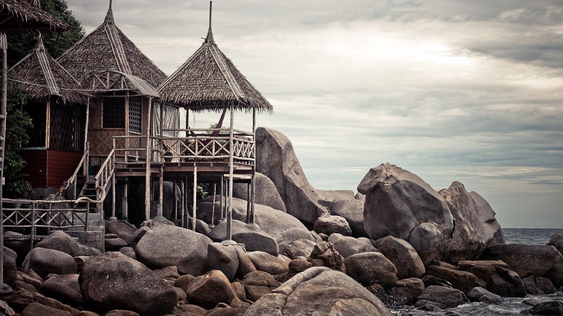 Paisagem exótica e incrível no lago Nutri montanhas, e dentro da ilha novamente das rochas