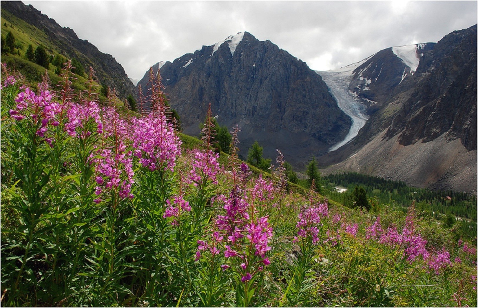 Árvore com galhos espalhados em um prado verde suculentoÁrvore com galhos espalhados em um prado verde suculento