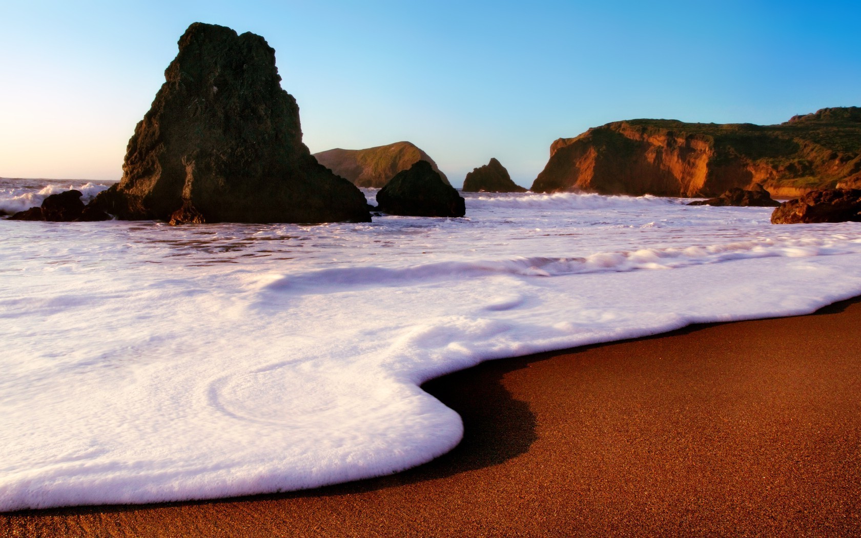 Paisagem montanhosa. O céu reflete-se. Natureza