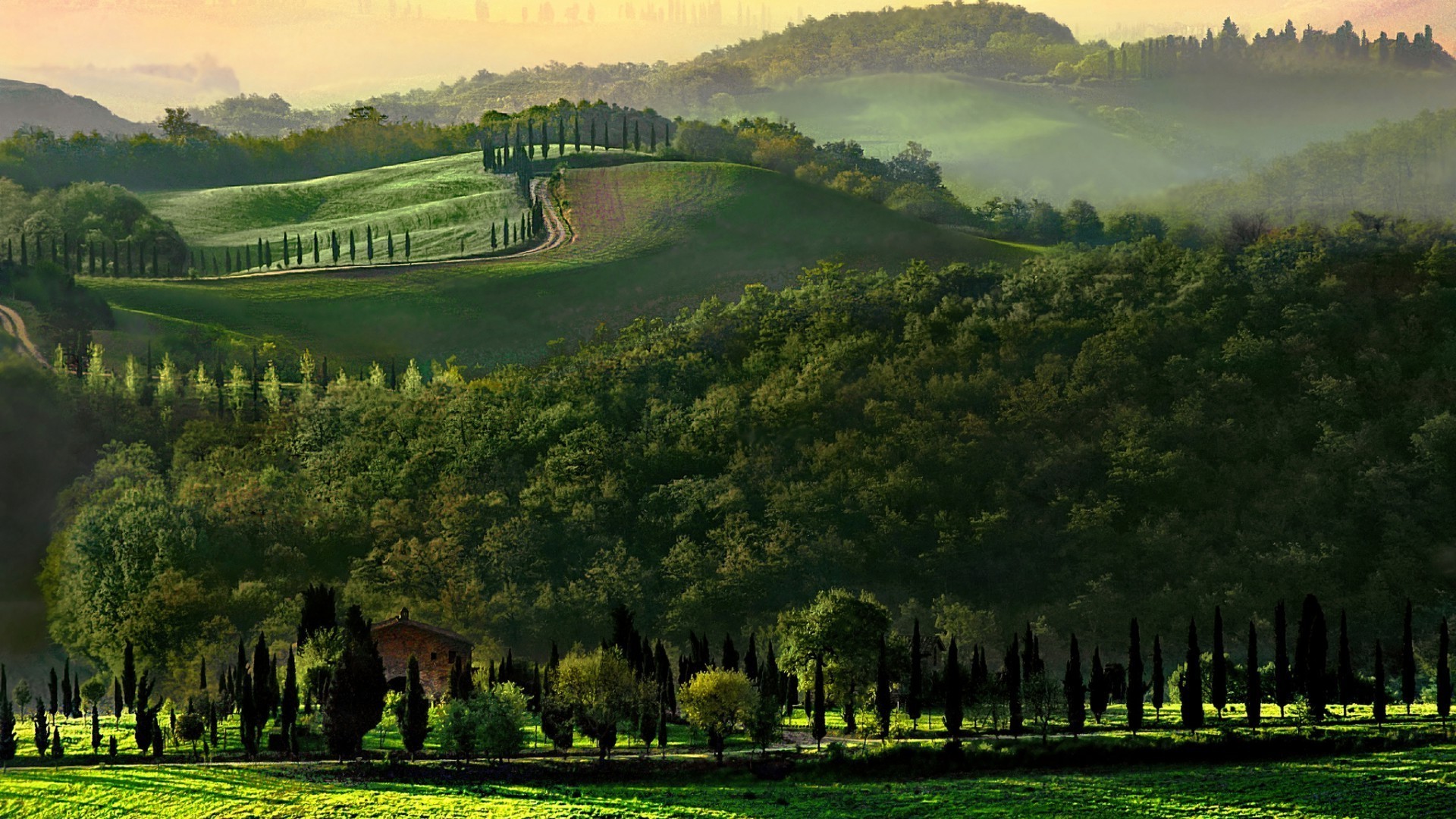 Imagem da Floresta Verde isosh em que a grama da montanha e da casa está localizada