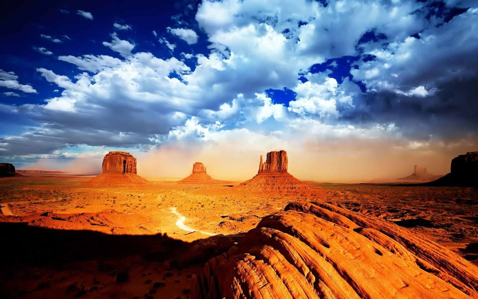 Paisagem deserta ao pôr do sol sob as nuvens