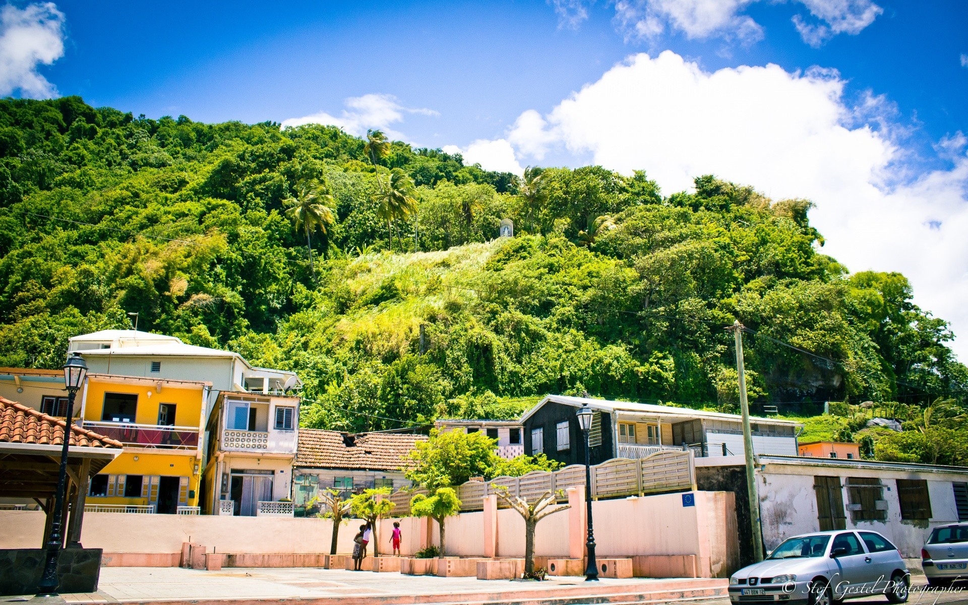 Cidade na encosta da montanha verde