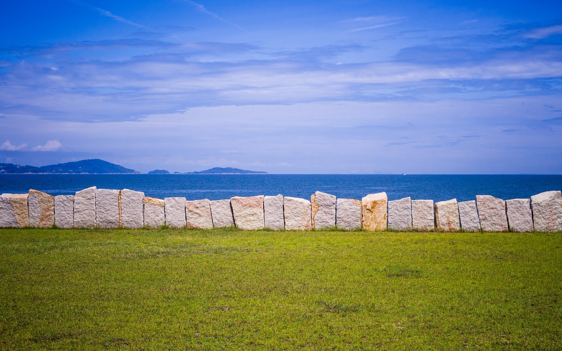 Céu azul, sol ofuscante. campo verde iluminado pelo sol escaldanteCéu azul, sol ofuscante. Campo verde iluminado pelo sol escaldante
