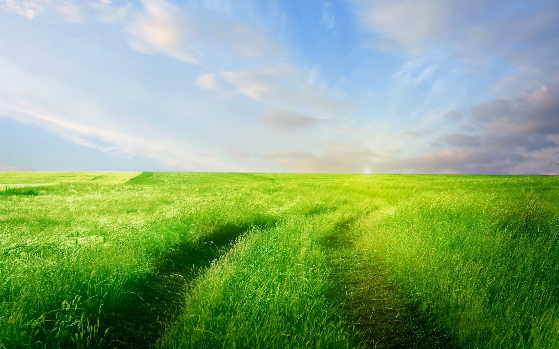 Bela paisagem. Erva verde. Céu Limpo