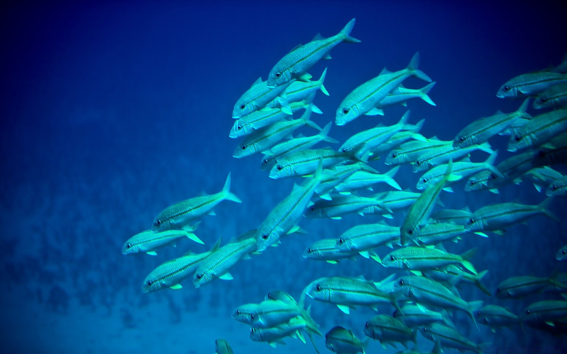 Bando de peixes submarinos azuis