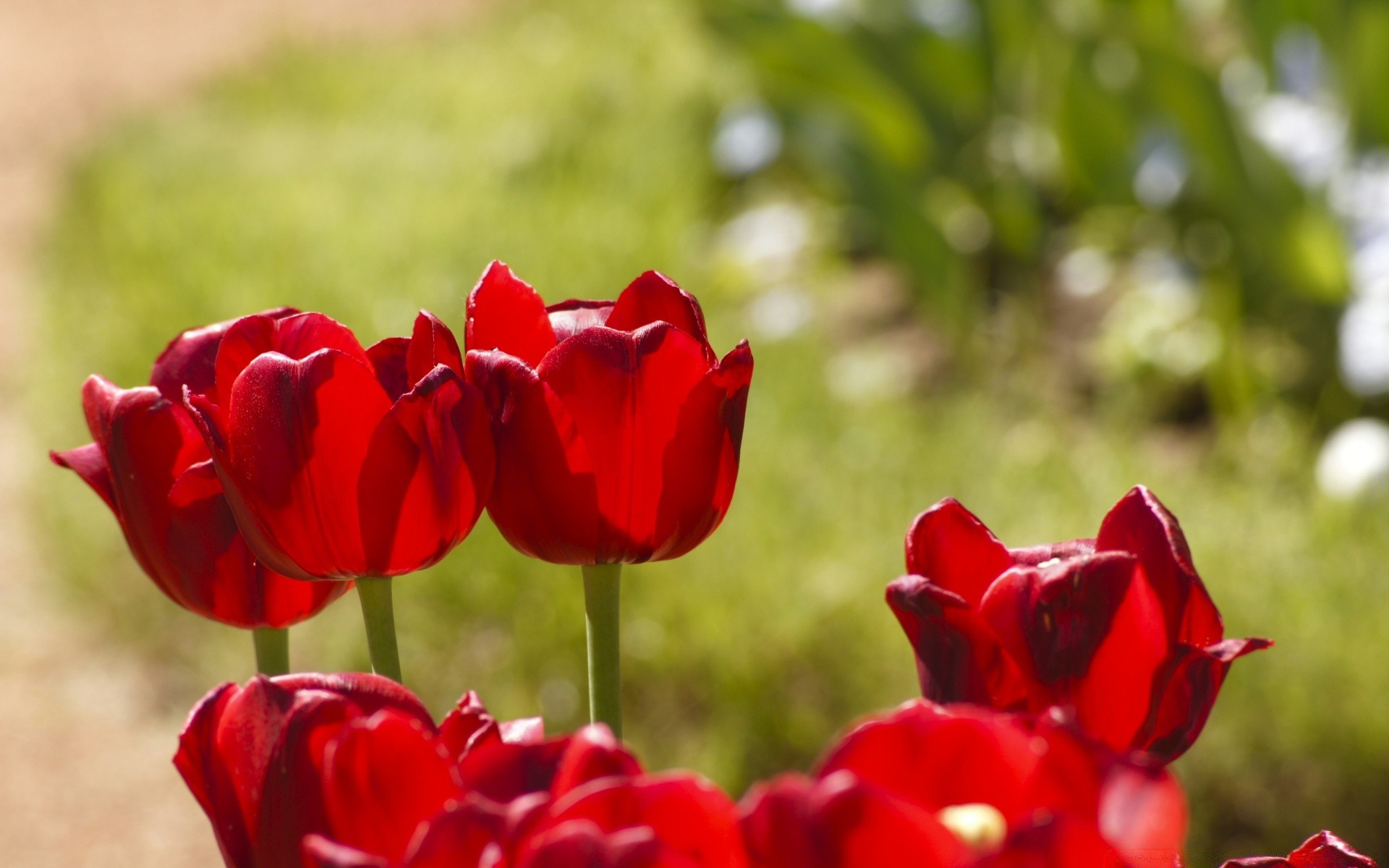 Tulipas vermelhas sob o sol