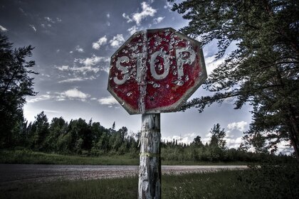 Sinal de parada antigo na estrada