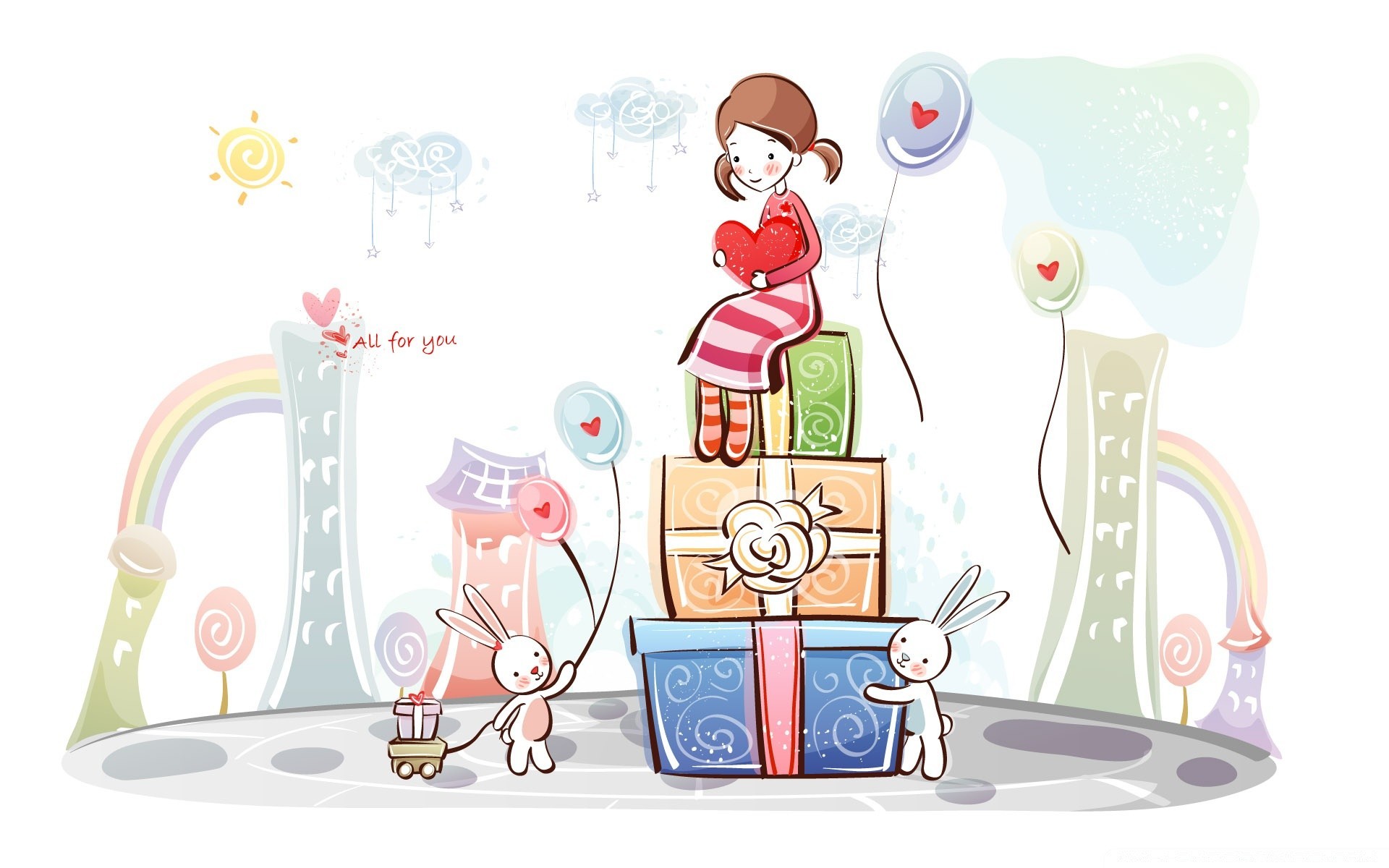 Menina sentada em uma pirâmide de presentes para o Dia Dos Namorados