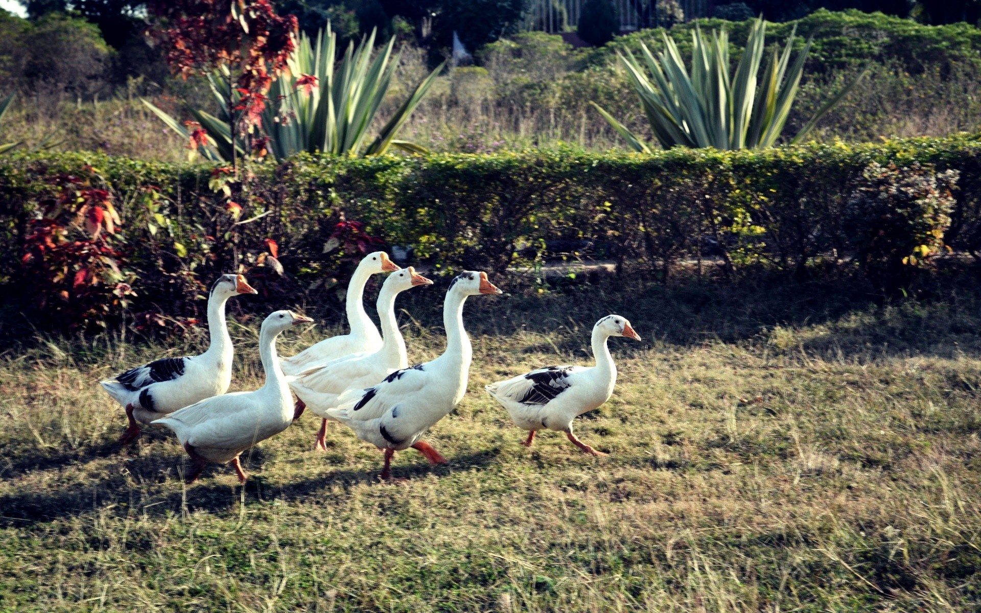 Um bando de gansos passeia pelo Parque