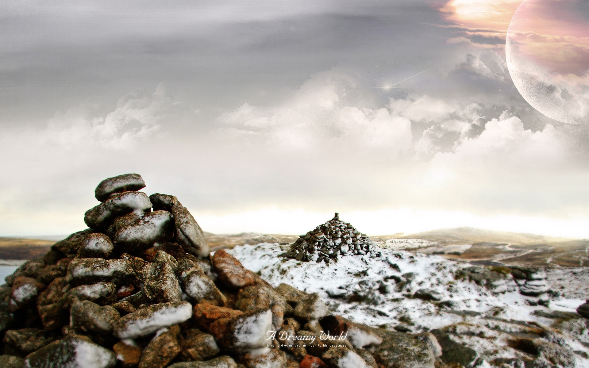 Montanhas e rochas no fundo do céu