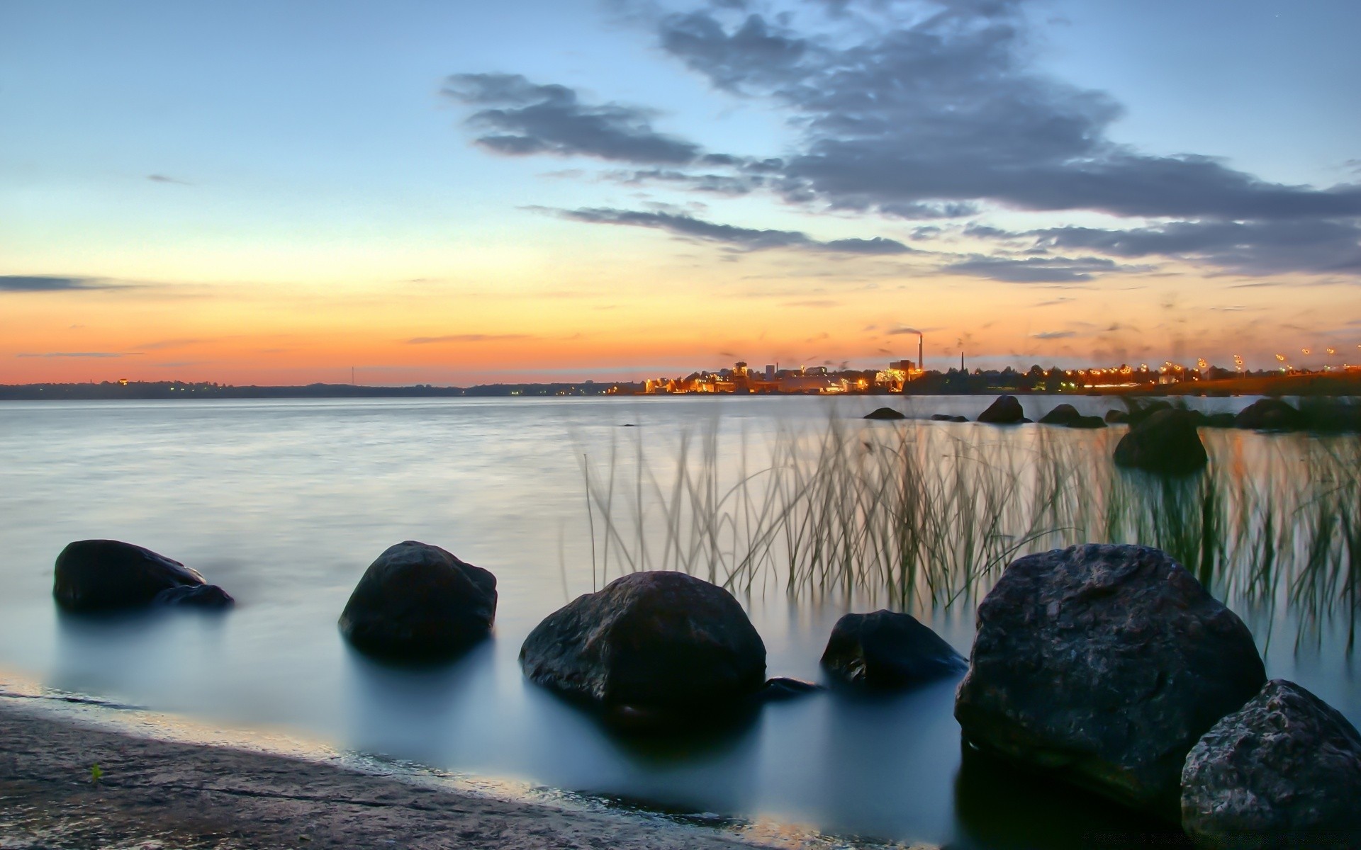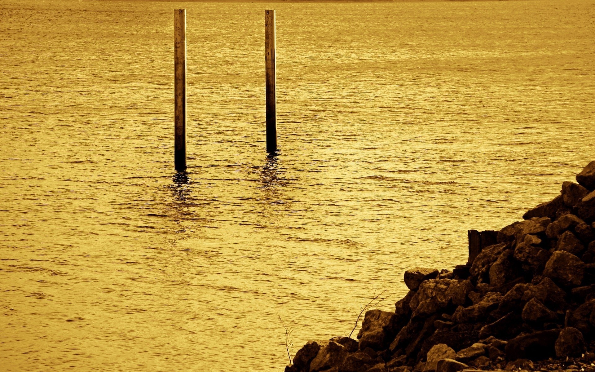 Mar, pedras, plantas na água