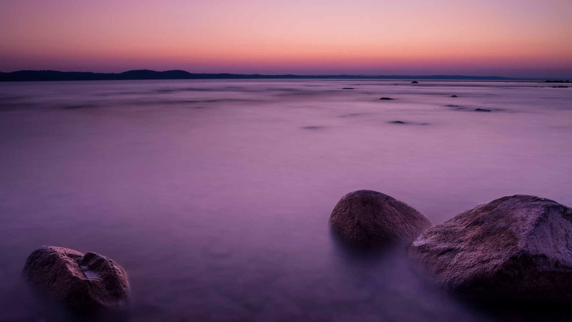 O mar lava as pedras na praia