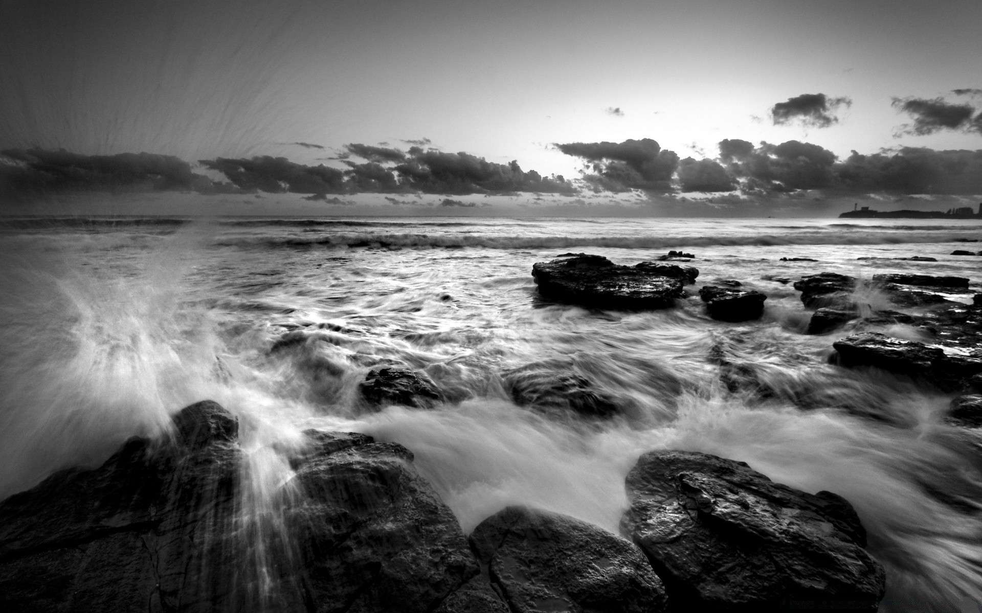 A tempestade e a espuma das ondas são quebradas em pedregulhos