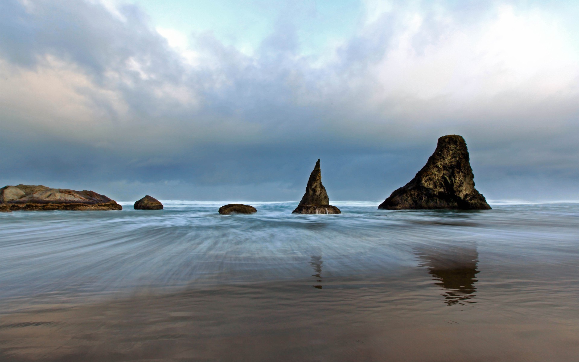 Pássaro voa no fundo das ondas do mar e do pôr do sol