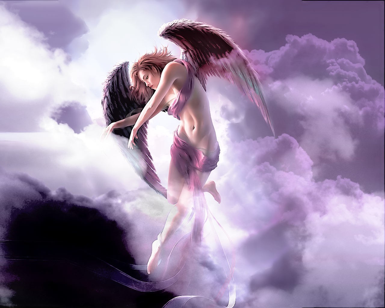 Menina anjo com asas nas nuvens