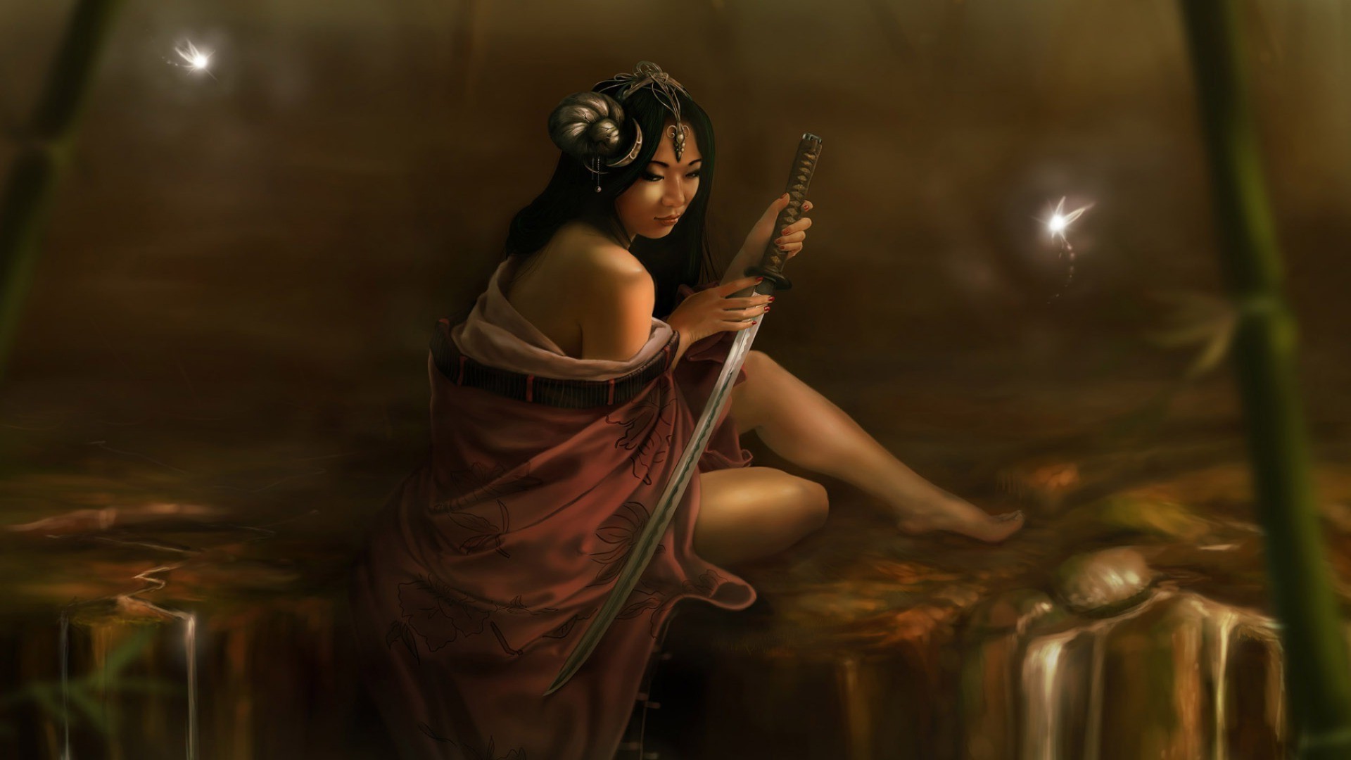 Mulher jovem bonita em um fundo abstrato desfocado. Pintura