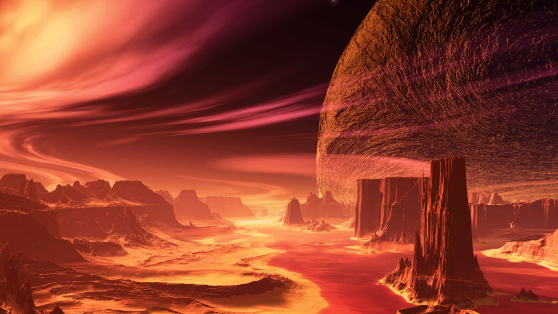 Imagem de um planeta com discos no fundo do espaço