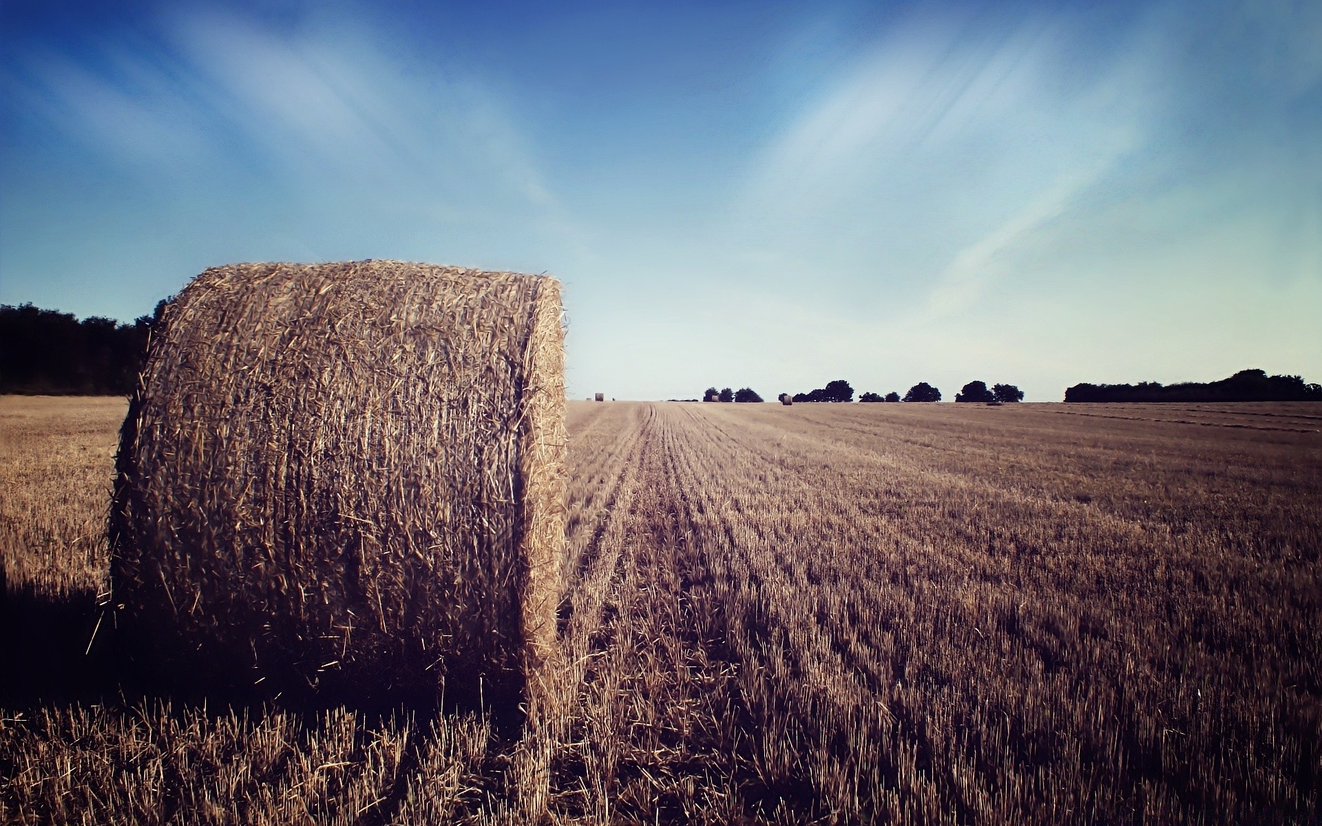 Paisagem criativa contra o pano de fundo do feno de trigo na agricultura