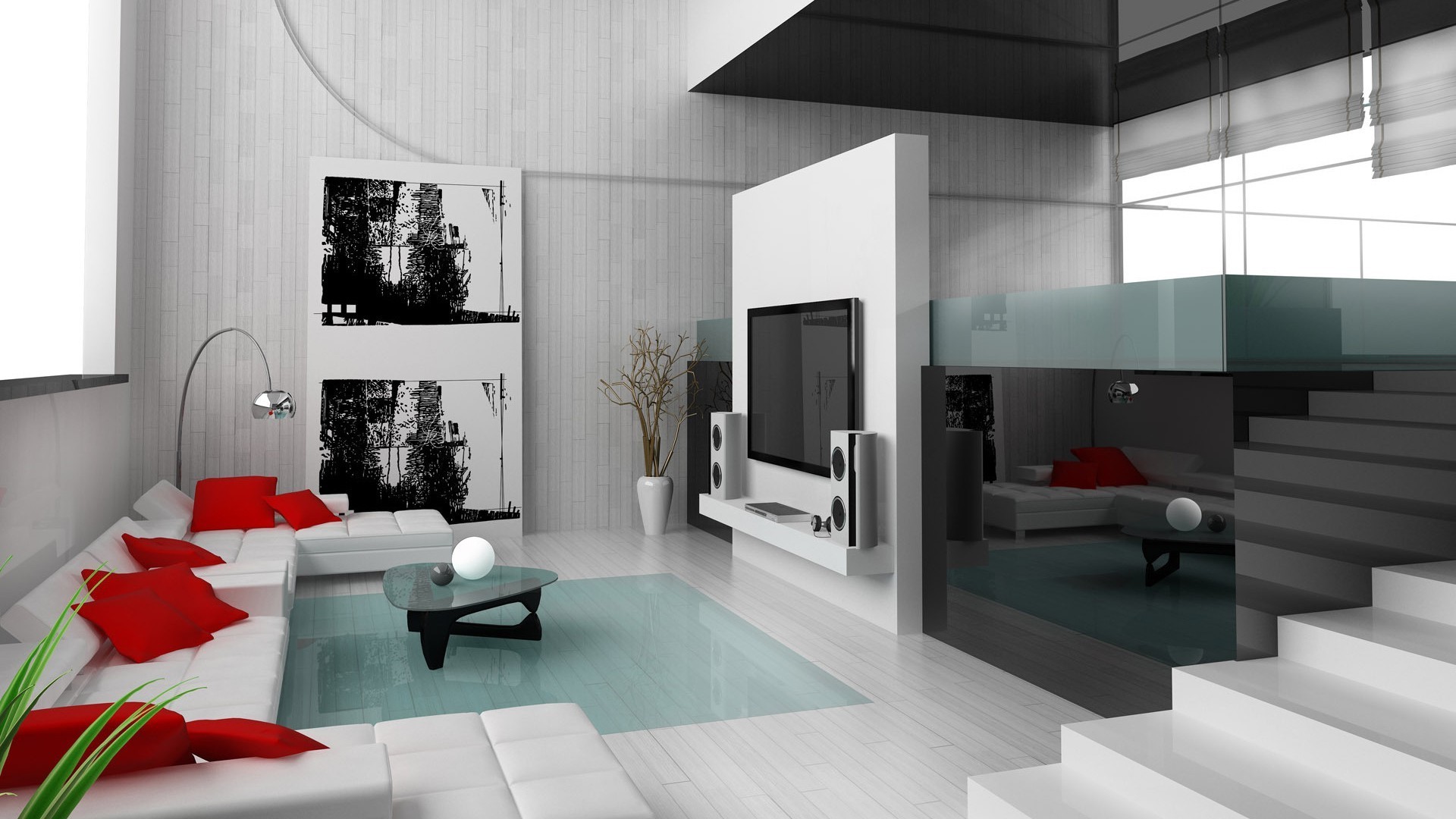 Interior moderno e minimalista da sala de estar