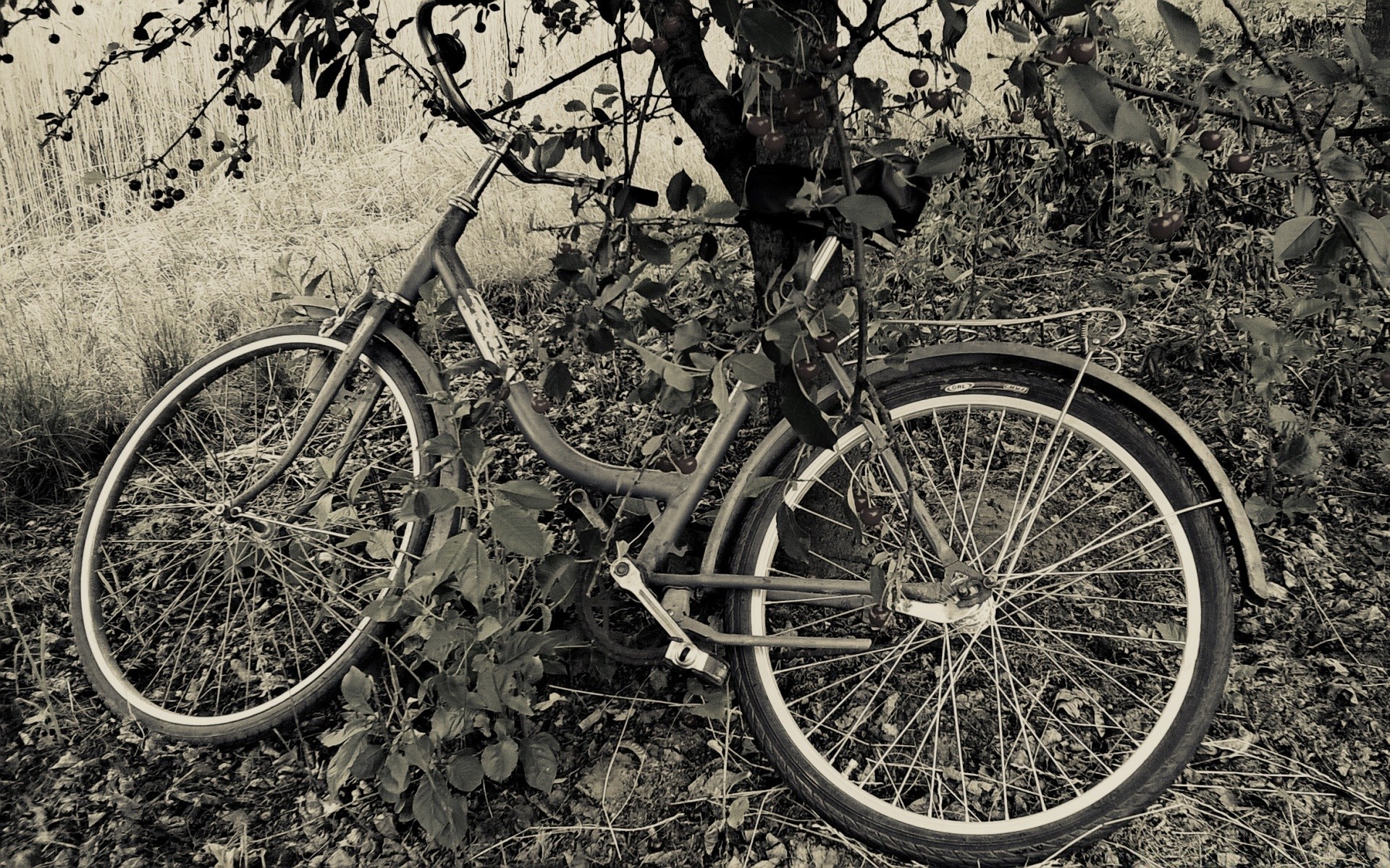 Bicicleta sob uma árvore de cerejeira