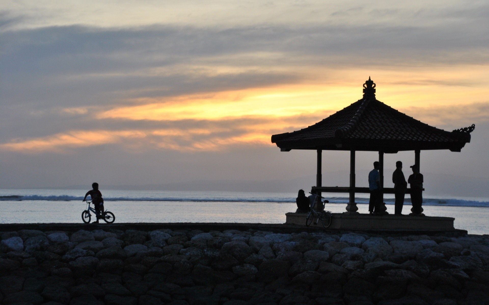 Uma estrada que corre ao longo de uma praia rochosa em meio ao pôr do solUma estrada que corre ao longo de uma praia rochosa em meio ao pôr do sol