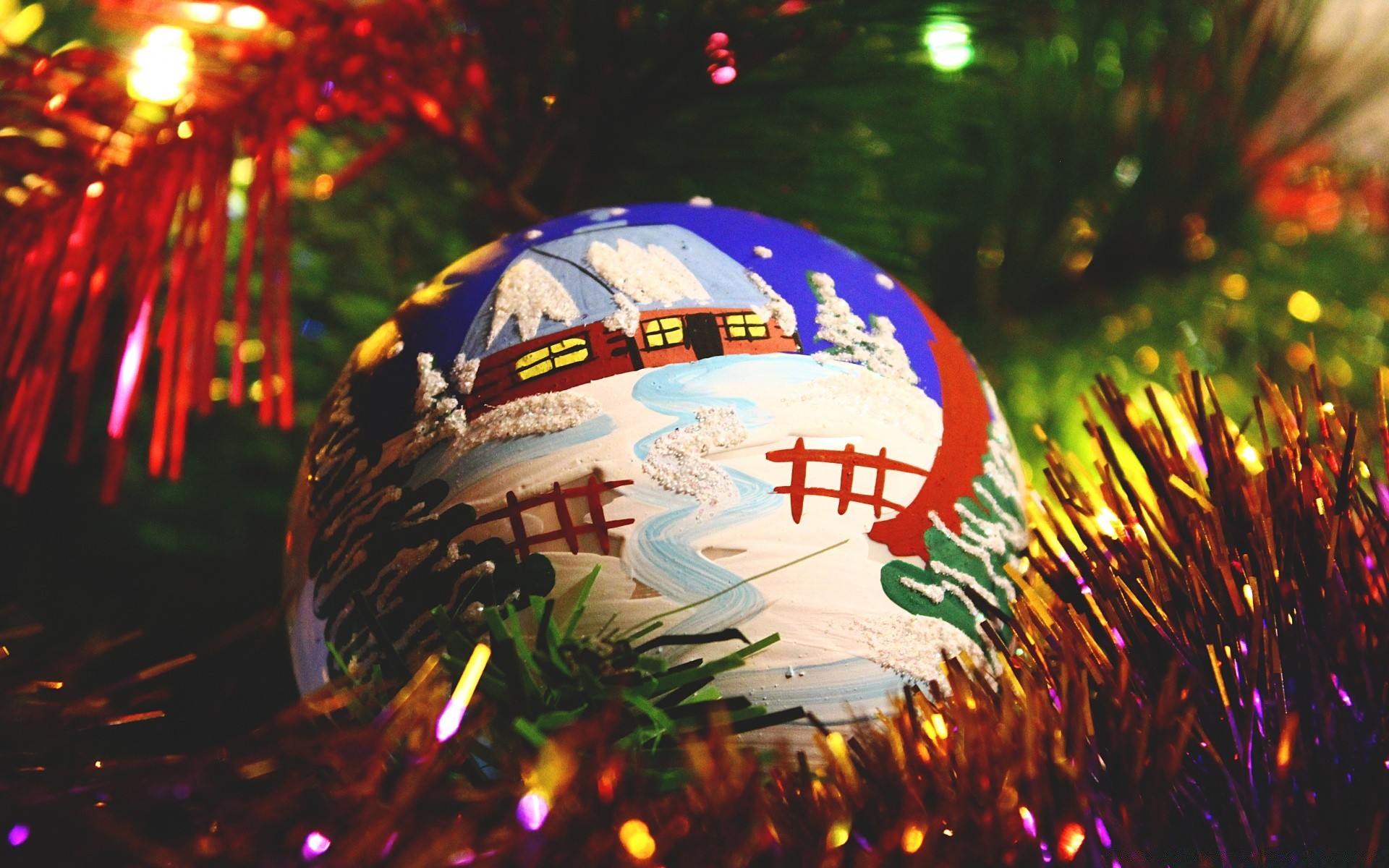 Enfeitado com bolas de Natal ель