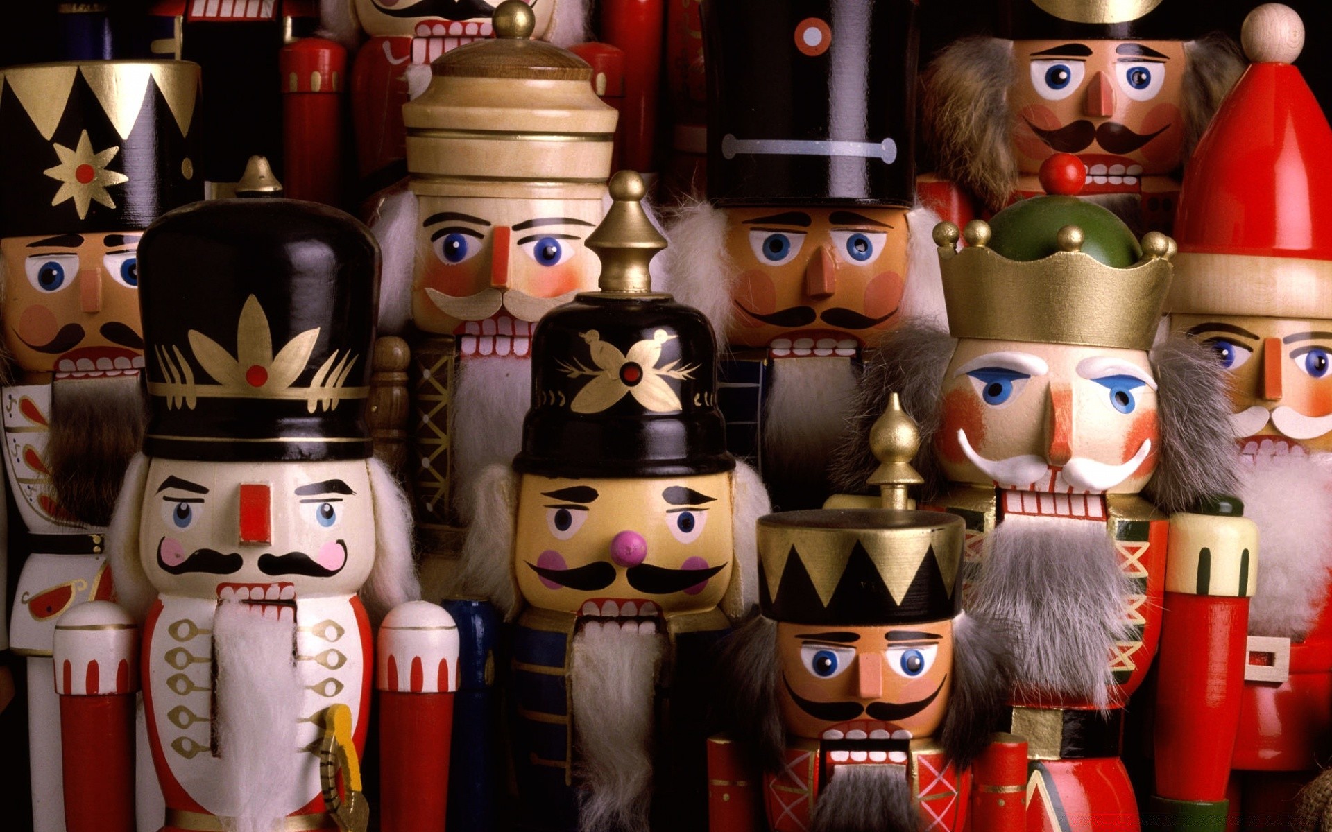 Desenhos animados, papel de parede de Natal com rena e Papai Noel