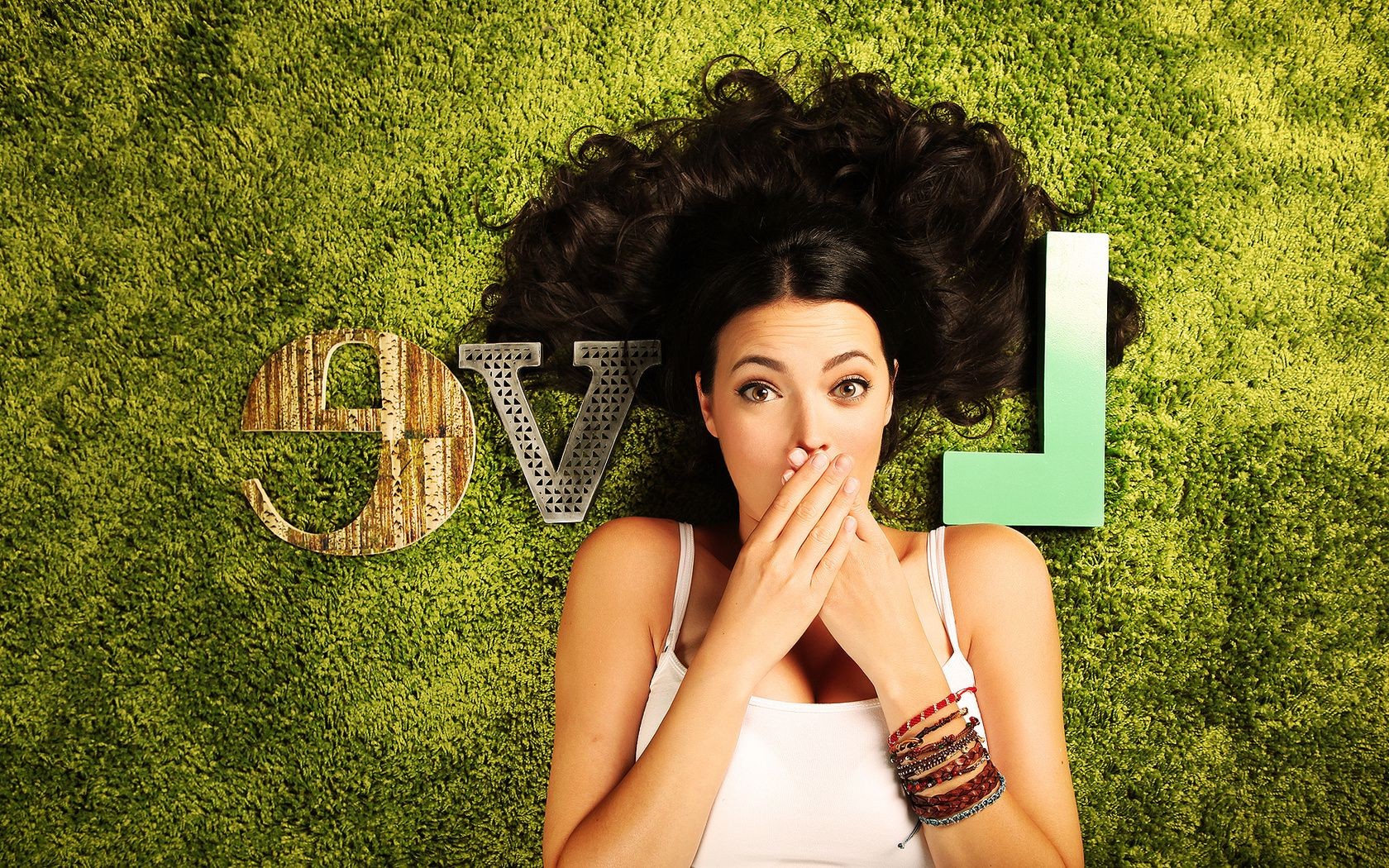 Menina em uma camiseta branca e com uma pulseira