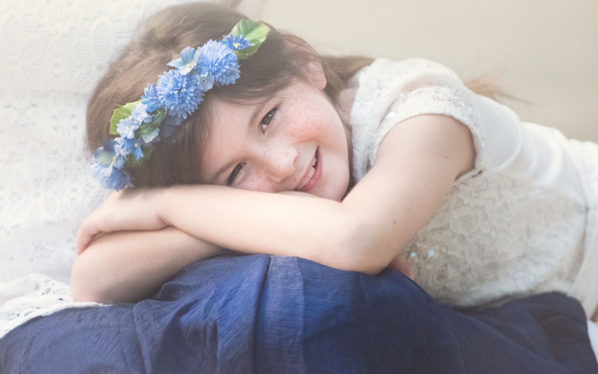 A mulher e a criança inclinaram a cabeça sobre ele.