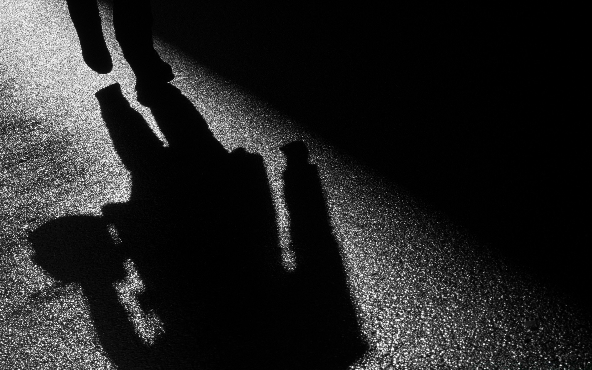 A sombra de um homem no asfalto molhado