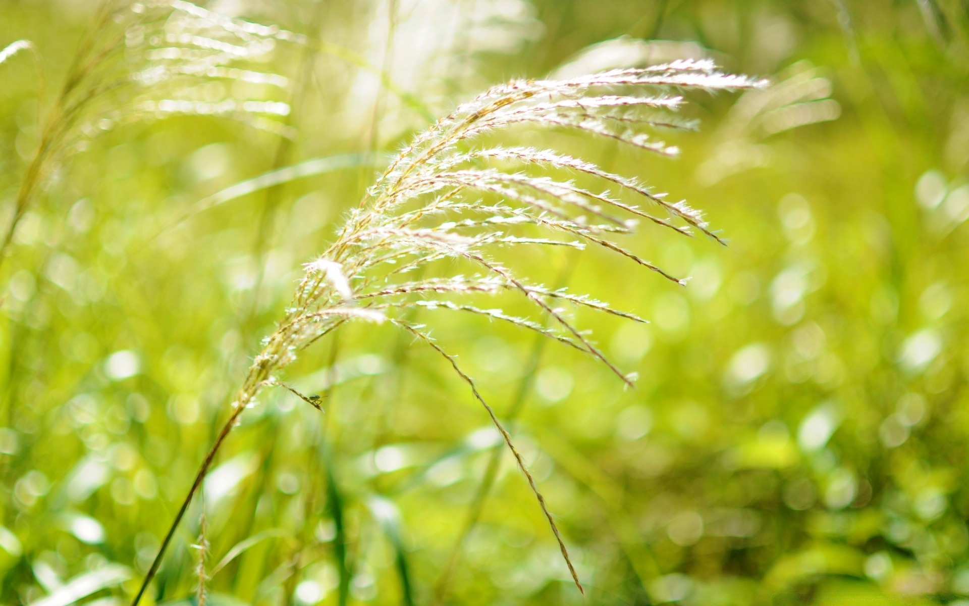 Gotas de orvalho nas pontas afiadas das folhas de grama