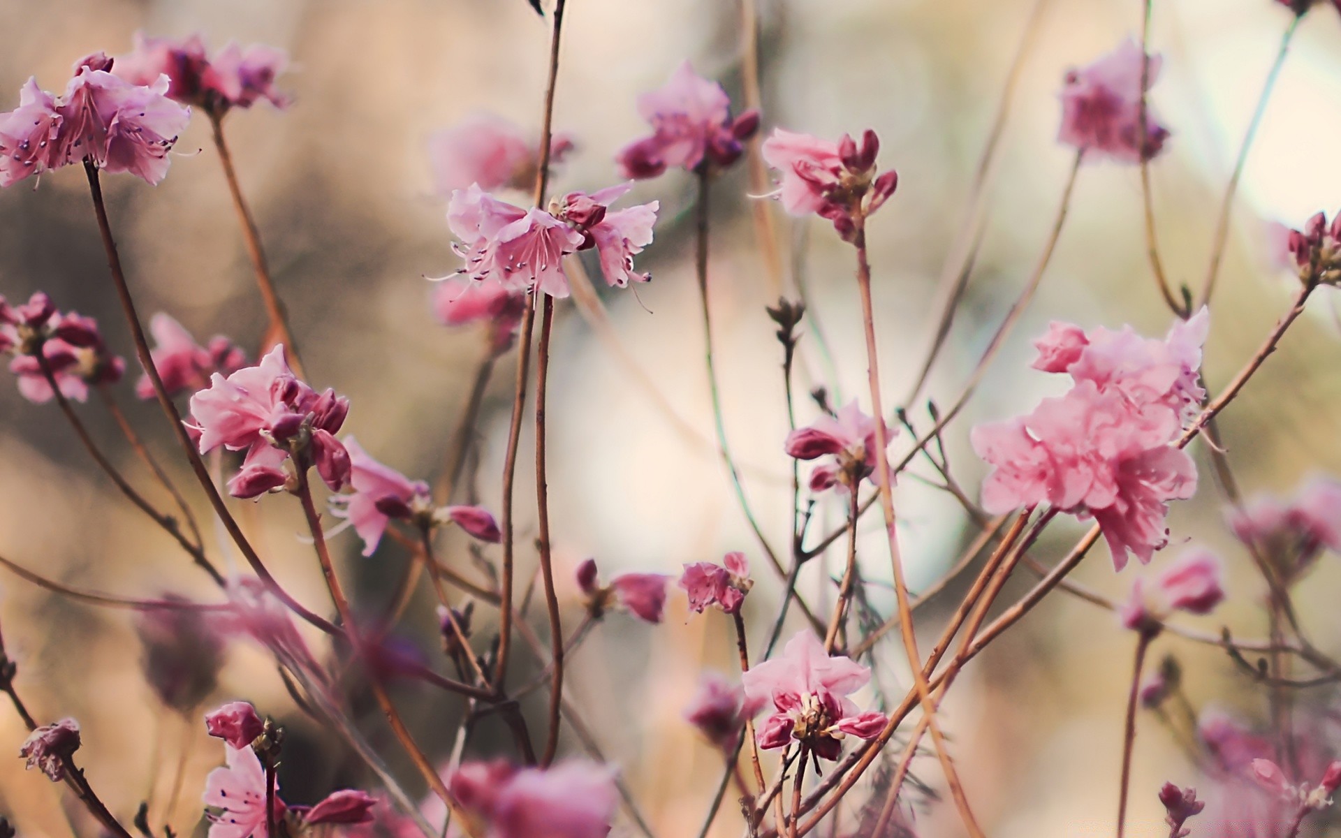 Pequenas flores rosa em hastes finas