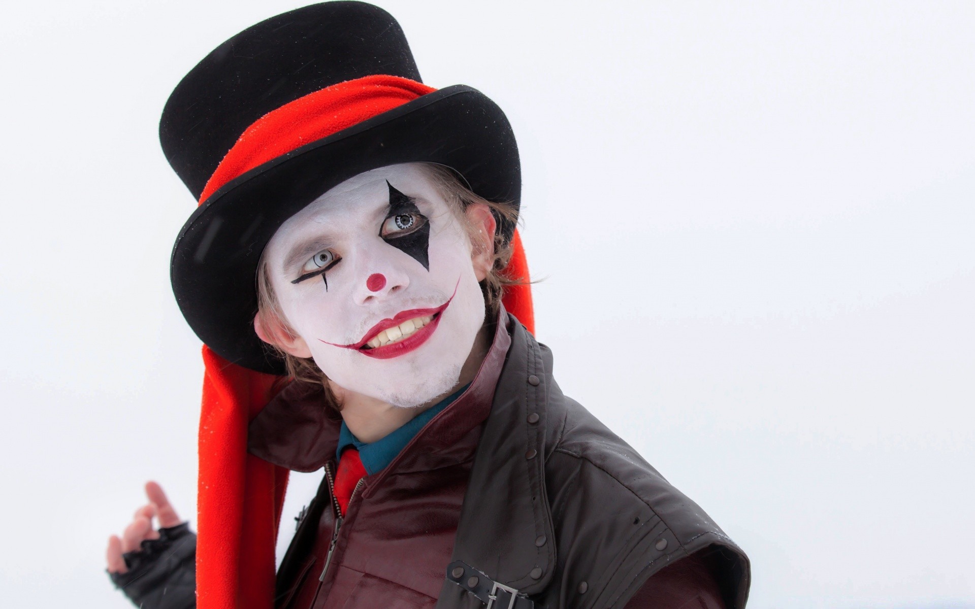 Retrato de um homem com maquiagem de palhaço