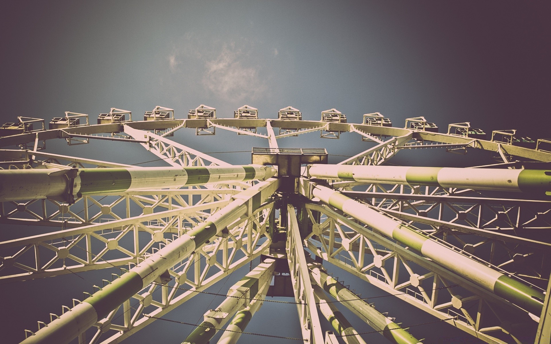 Roda gigante com imagem de Mickey mouse no fundo das fontes