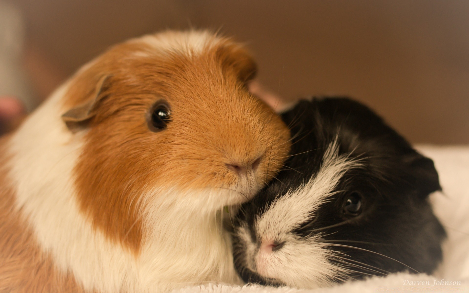 Dois porquinhos-da-Índia vermelho e preto com branco