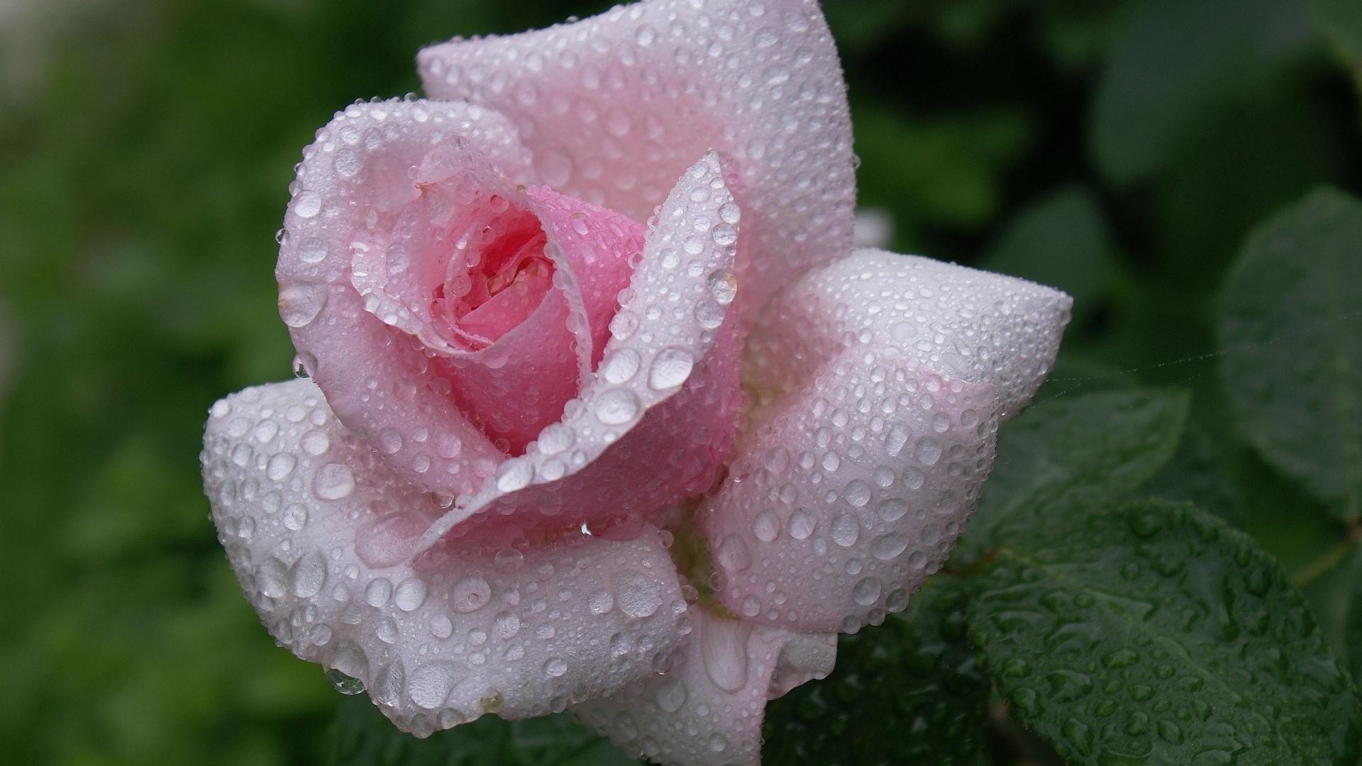 Rosa delicada em gotas de orvalho
