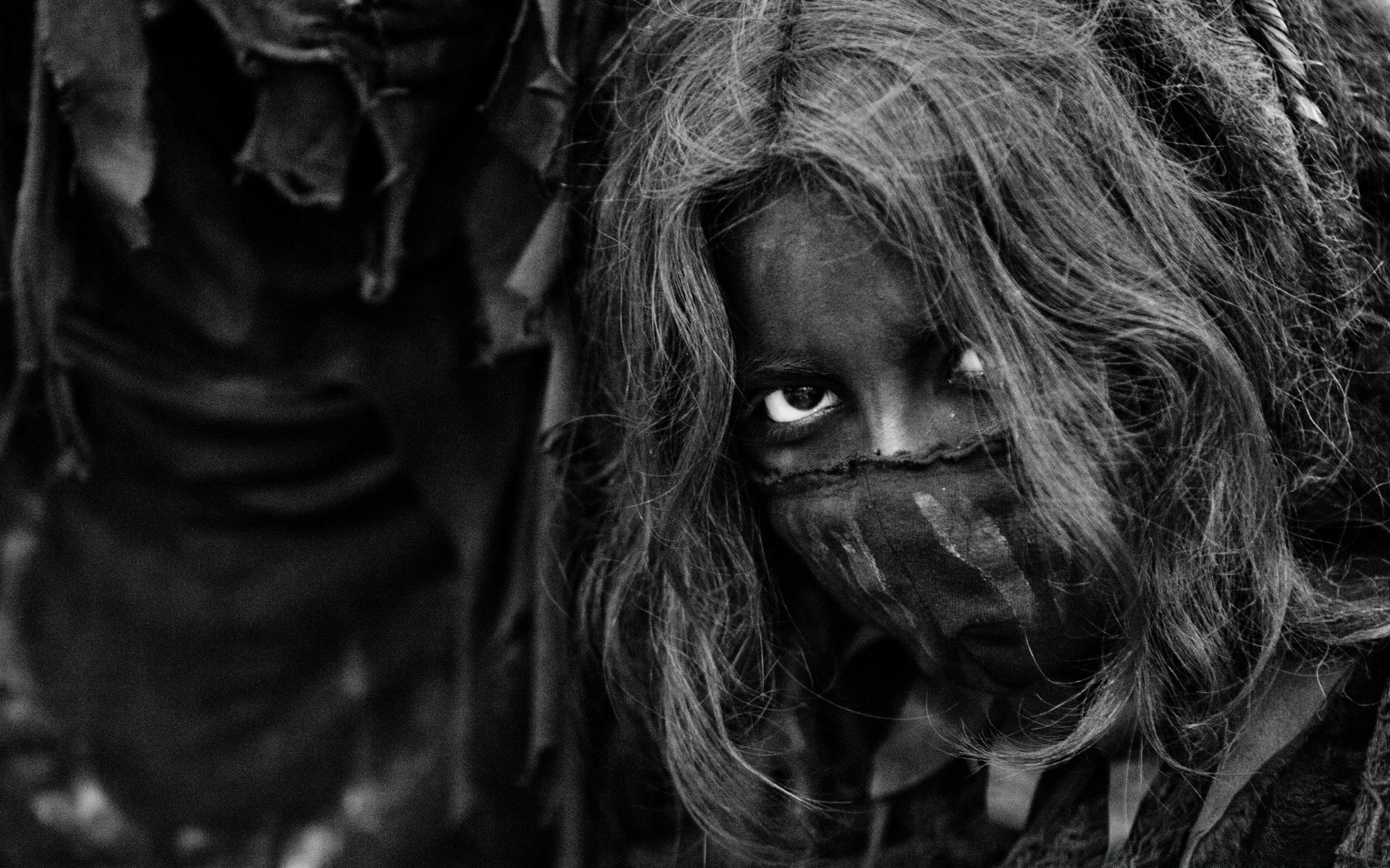 O guerreiro da série de televisão com uma cicatriz no rosto