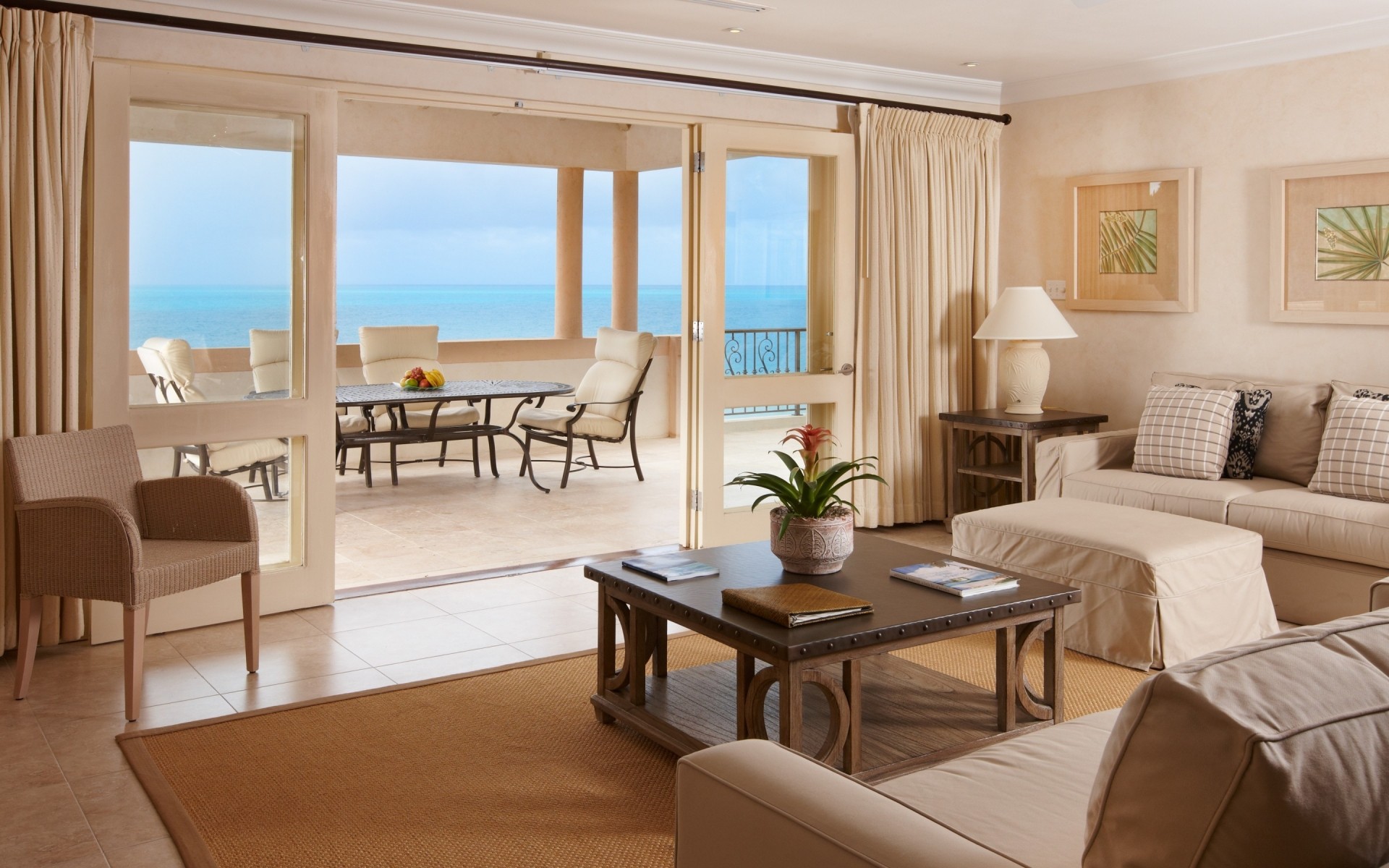 Vista da varanda da sala de estar luminosa