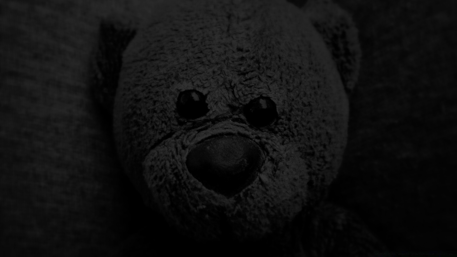 Ursinho de pelúcia cinza olha para você sem piscar