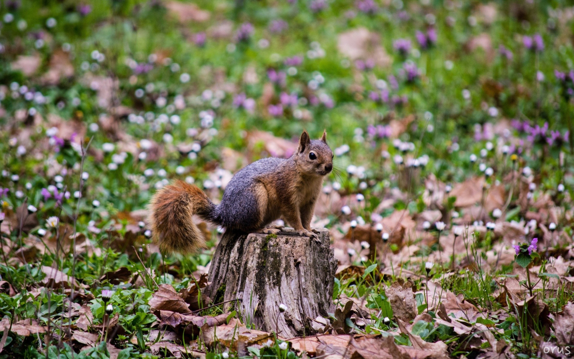 Esquilo Variegado senta-se no coto