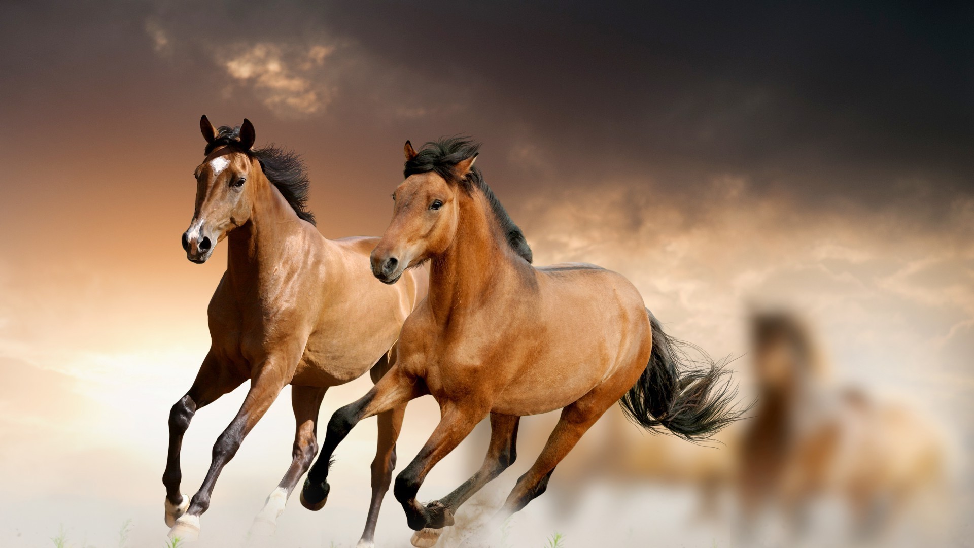 Cavalo branco com cauda preta e juba corre alegremente pelo campo