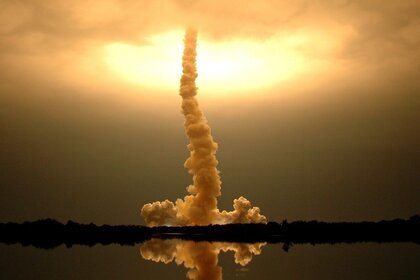 A fumaça vai para o céu, um fenômeno maravilhoso ao pôr do sol