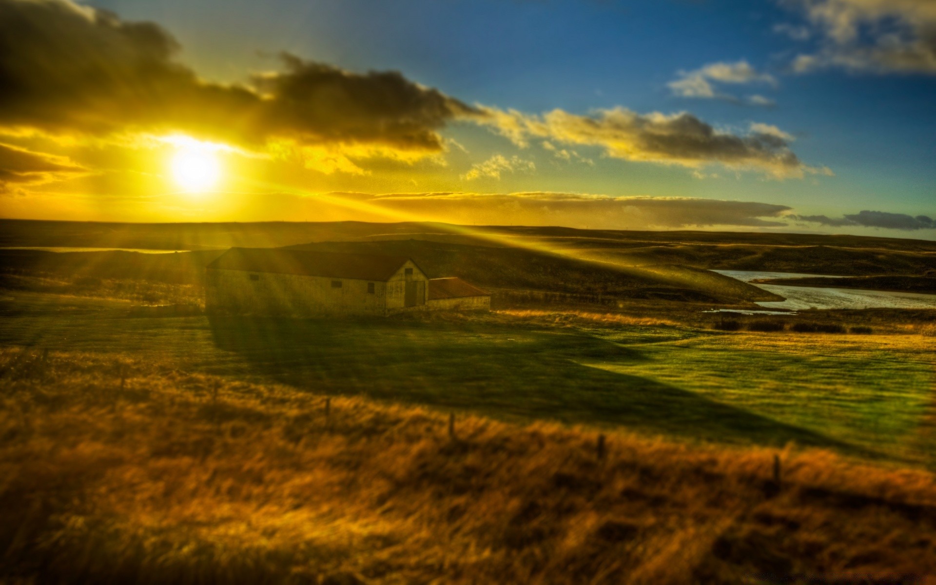 Pôr do sol americano, brilho da água